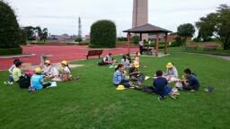 港公園に着きました。お弁当を受け取って、ランチタイムです。青空も出てきて、風が気持ちいいです。