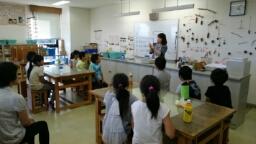 自然教室2日めの夕食です。今日一日の活動の疲れがとれるようなフルーツポンチが人気のようです。写真に写る姿もリラックスしています。