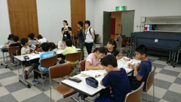 食事の後は、ハガキ書きです。中には、家の人の名前を漢字で書くのに自信のない児童もいるようですが、熱心に文面を考えています。