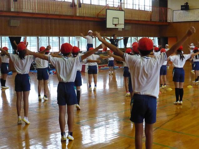 9月9日の朝と1校時は運動会の練習でした。雨が降り続いているので、体育館で開会式・ラジオ体操・閉会式の練習を行った後、紅白リレーの入場隊形の確認やリレー順の確認、矢板音頭の入場隊形や踊りの練習を行いました。