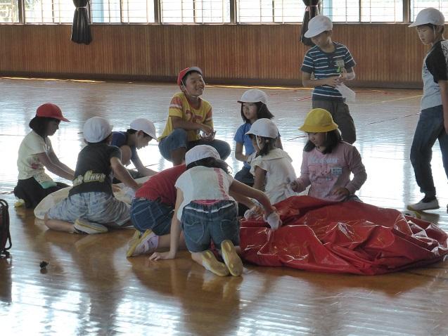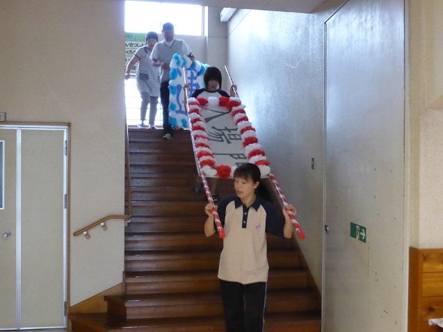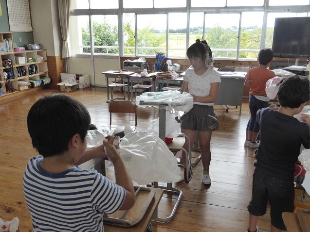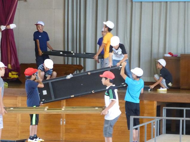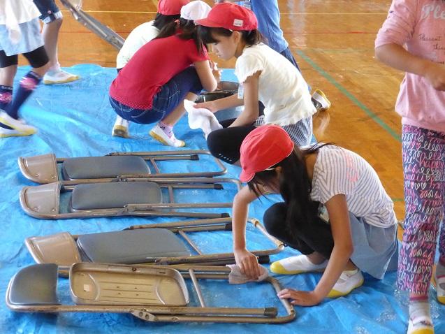 9月15日の1校時は、4~6年生で運動会の後片付けを行いました。体育館に一時保管しておいた大玉の空気を抜いて保管したり、机や椅子についた砂を落として収納したりという作業です。椅子の脚に巻いていたガムテープを剥がしたり砂を落としたりという作業に手間がかかりましたが、児童たちは労を惜しまずよく働いてくれました。