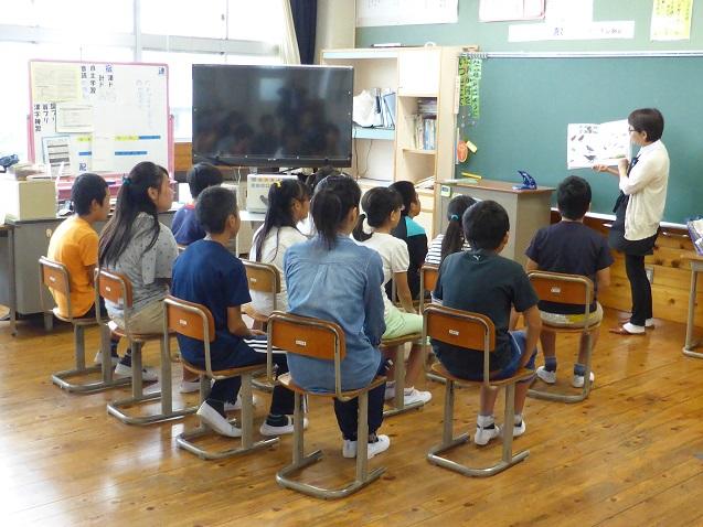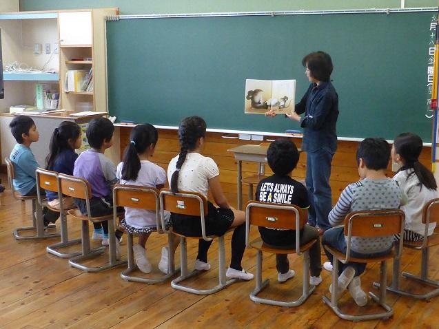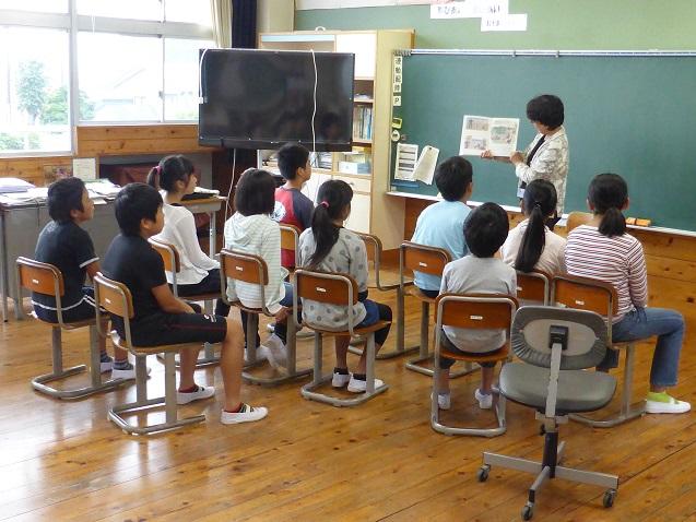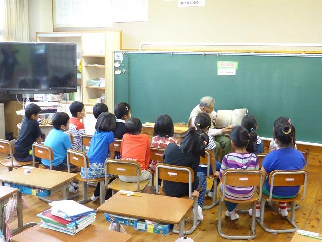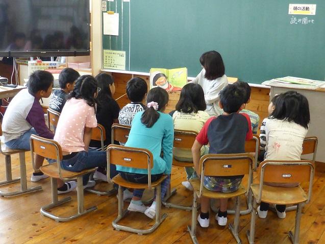 9月18日の朝は、ポットの会の方々が読み聞かせをしてくださいました。児童は上手な読み聞かせに引き込まれて集中して聞いており、中には、身を乗り出して話を聞いている児童の姿もあります。