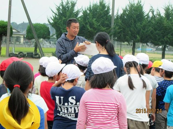 今回は、「けいどろ」を行いました。短い時間でしたが、運動会の疲労を感じさせない軽快な動きで、楽しく活動していました。活動後、全員が集合し、挙手をした児童のうちの数人の児童が全校生の前で感想を発表しました。高学年になると、「初めての外での活動で、楽しく活動できました。」のように、理由を付けて感想が言えるようになっています。