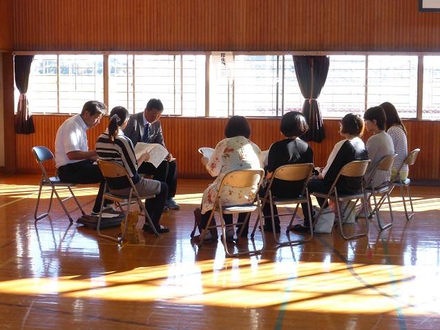 授業参観の後、1学期末PTAを行いました。まず、全体会を体育館で行い、PTA会長さんの話、続いて学校長より学力向上について読書やノーメディアとの関係についての話、教務主任より通知表についての話があり、その後、役員選出についての内規変更の説明、各部会に分かれて11月に行われる「ひまわり祭」についての話し合いを行いました。