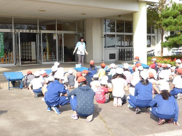 10月26日(月)の業間から3校時にかけて、不審者が侵入したことを想定し、避難訓練を行いました。指導者として、矢板警察署のスクールガードの方、生活安全課の方、乙畑駐在所員の3人が来てくださいました。