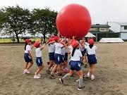 今日の全体練習は、応援合戦、大玉運び、全校まり入れです。まり入れは、運動会の定番ですが、子どもにとってはなかなか入らないものです。案の定、今回の練習でも一ケタ?です。さて、本番では何個入るか、楽しみにしていてください。