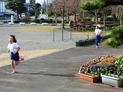 1年生が自作の凧を校庭で揚げていました。元気に走って凧を揚げている姿は、今の季節にぴったりです。