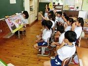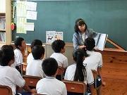 今日の朝の活動は、運動会練習を一休み、お話ポットの会の読み聞かせです。子どもたちが楽しみにしている時間です。家庭でもぜひ親子で読み聞かせをしてみてはどうでしょうか。