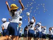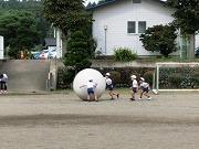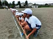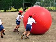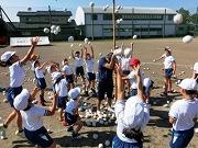 今日の全体練習は、応援合戦、大玉運び、全校まり入れです。まり入れは、運動会の定番ですが、子どもにとってはなかなか入らないものです。案の定、今回の練習でも一ケタ?です。さて、本番では何個入るか、楽しみにしていてください。