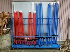 新しい竹馬が入りました。いままでの竹馬が古くなり、数も少なかったので、これで多くの子どもが休み時間や体育の授業で使用できます。今日から使用ができるようになったため、早速、竹馬に子どもたちが集まっていました。