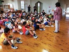 今日の朝の活動は、2年生の音読集会です。「スイミー」という魚の物語を一人一人が何も見ないで、大きな声で語りました。素晴らしいですね。