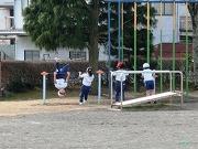 1・2年生の体育は、まず校庭にある遊具を使ってのサーキットトレーニング。そして、体育館で縄跳びです。今、乙畑小の遊びのブームは、縄跳びになってきました。