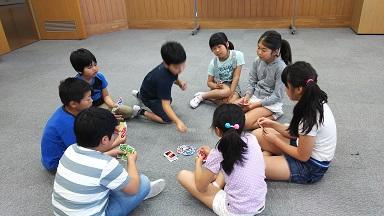 2日目の活動の前にできたゆとりの時間に、輪になってゲームを楽しんでします。