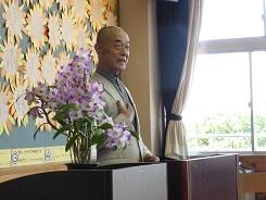 市村順一様には、毎年ひまわり栽培でご協力をいただいており、昨年度は6年生の理科研究でもお世話になった方です。本日は、2年生の見学をお引き受けくださり、菊花のお心遣いもいただきました。いただいた菊花は2年生がアレンジをして、校長室にも持ってきくれました。