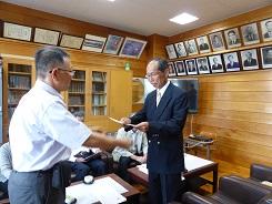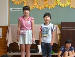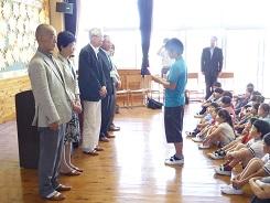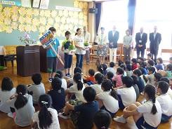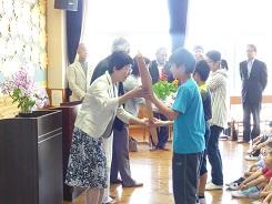 次に、緑の少年団の団長と副団長の2名が人権の花等の贈呈を受け、団長が代表してお礼をしました。