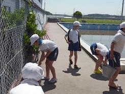 6月10日の昼休みは、緑の少年団活動を行いました。本日の緑の少年団活動は、校舎周辺の除草をしました。縦割り班の活動なので、高学年の児童が低学年のことを世話しながら、最後には片付けまで行っています。毎回のことですが、「片付けまでが作業」を実践しているすばらしい児童たちです。