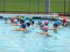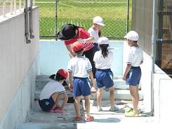 「プール学習が大盛況です。体育係の号令でみんなで 準備運動をして、水慣れの後は、掛田先生が模範けのびを披露しました。その後、各自がけのびの練習、全員が100メートル泳いだ後に自由時間となりました。浮島リレーや水球、チーム戦での水泳学習も大いに盛り上がりました。」との事です。