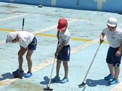 2校時は、1年生~3年生がプール入り口周辺、シャワーやプールサイドの清掃を行いました。