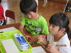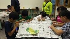 あらかじめ計画していた図をもとに、紙粘土で形を作り、マグネットを取り付けて完成になります。紙粘土の色に限りがあるので、緑色を使う場合は青色と黄色をこね合わせる等の工夫が必要な場面もありますが、保護者の方が上手に児童をサポートしてくださっていたので、楽しく製作をしていました。
