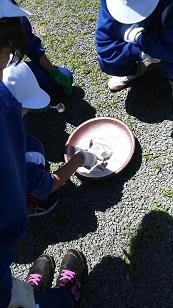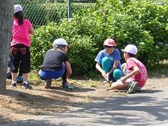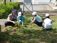 校舎裏には、ドクダミの花が咲いていました。日本三大薬草の一つですが、独特の臭いがあるので、写真を撮ってる私に「くさい花があります」「手がくさくなりました」など口々に教えに来てくれました(三大薬草の他の2つは、「センブリ」と「ゲンノショウコ」です)。