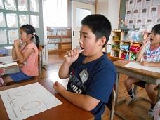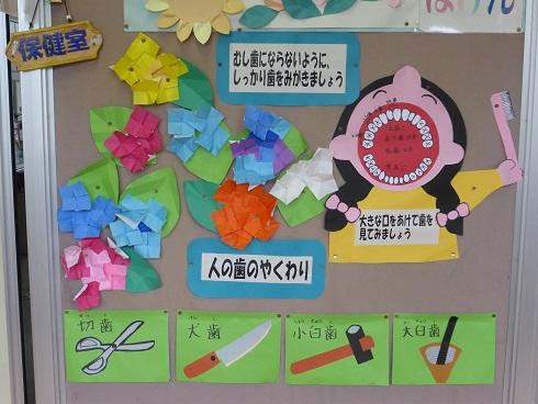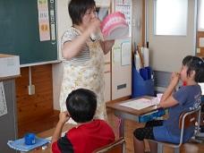 現在、各学年で養護教諭が歯磨きの指導をしています。すでに、1年生、2年生、3年生、5年生は終わっており、4年生と6年生も今週中に行う予定です。学校で歯磨き指導に使用している磨き残しを調べるチェッカーを、家庭へも各児童につき1個持ち帰らせております。ご家庭でも学校で行った歯磨き指導が実践できているかをご確認ください。