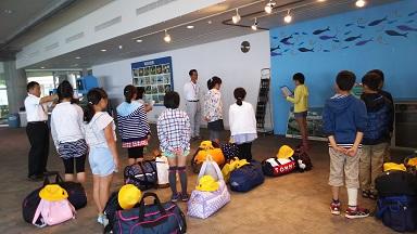 あいにくの天候の中での出発式となりましたが、天候が回復しないときには、午後の活動はなぎさ活動・砂の造形ではなくプール活動に振替える予定です。温水プールに入ったことのない児童もいるので、それもまた貴重な経験で楽しいと思います。