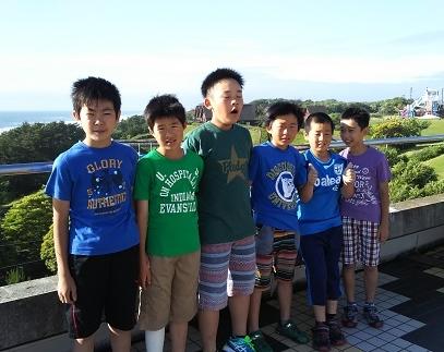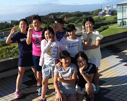 2日目の朝の様子です。早起きをして、昨夜描いた絵はがきを投函して自然の家の前で記念写真を撮った後、海の見える場所へ移動をしました。海と、朝日と、青空の3つがそろうと、臨海自然教室の雰囲気が盛り上がりますね。