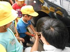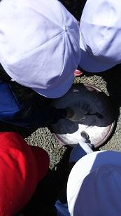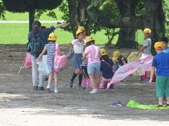お昼の時間帯での立ち寄りだったので、本校では第2校庭の南側にある桜の木の日陰の部分でお弁当を食べてから、塩谷広域環境衛生センターに向かいました。見送りに行ったところ、川崎小学校の児童もバスの中から手を振って応えてくれました。