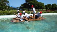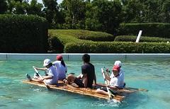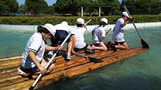 2日目午後の活動は、いかだカヌー遊びです。まず、自分たちでいかだを組み立ててから、水に浮かべてイカダ遊びをしました。晴天に恵まれた中でのいかだ遊びとなり、絶好調でした。その後、組み立てたいかだを解体して、カヌー遊びに移りました。