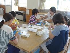 2日目の夜の活動は、臨海自然教室での最後の活動である貝の根付け作りでした。