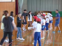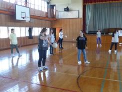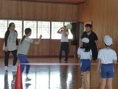 6月17日の4校時に、4年生の親子ふれあい活動でプレルボールを体育館で実施しました。西ドイツで考案されたスポーツで、プレルというのは「げんこつで打つ」という意味なのですが、技能の高くないうちは平手で打っても良いというルールを用いる場合もあるそうです。本日は、「大人はげんこつ」というルールだったようです。