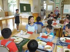 今年度初めての会食でした。お昼の放送は、1年生のプール学習のめあてに関する五七五作文の発表でしたが、温かい雰囲気の中でみんなで放送を聞きながら、マナーよく食べることができました。