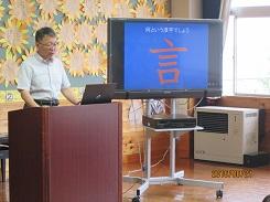 贈呈に先立ち、人権擁護委員の 坂井隆雄 様 が人権擁護委員のことや、学校で明るく楽しく生活するのに大切なことについてのお話を分かりやすくしてくださいました。