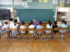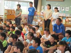 6月23日の朝は、お話ポットの会の方々による読み聞かせがありました。1年生は「きょだいな きょだいな」、2年生は「かがやいている「いのちのまつり」」、3年生は「まよなかのだいどころ」、4年生は「沖縄県平和記念日」、5年生は「ロバのシルベスターとまほうの小石」、6年生は「かさどろぼう」などでした。