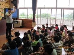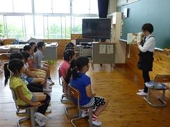 6月20日の12:20頃、川崎小学校の4年生が本校を訪れました。この日、川崎小学校では4年生が市内諸施設の見学で校外学習を実施をしており、その途中で本校に立ち寄ったものです。