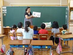 本日は、学年ブロック毎に集まりました。低学年は2年生の教室に集まり「パンダ銭湯」を、中学年は3年生の教室に集まり「ちか100だてのいえ」の大型本を、高学年は5年生の教室に集まり「あいしてくれてありがとう」の読み聞かせでした。どの教室の児童もストーリーに引き込まれており、身を乗り出して聞いている児童の姿もありました。