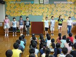 6月28日の朝は、4年生の音読集会と表彰を行いました。