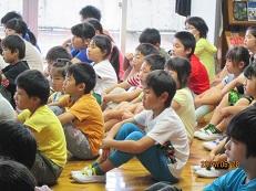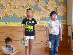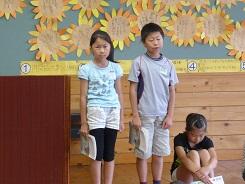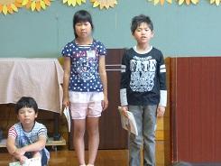 4年生の音読集会は、「白いぼうし(あまんきみこ 作)」でした。全部で4場面に分かれている作品なので、一つの場面を2人ずつ分担しての音読でした。一人あたり10行以上の音読となりましたが、全員が暗記をして大きな声で発表をして素晴らしかったです。