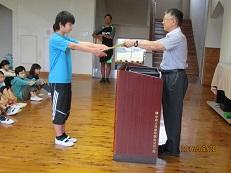 続いて、先日行われた矢板市小学校陸上競技大会と、塩谷地区小学校陸上競技大会の表彰を行いました。塩谷地区小学校陸上競技大会に出場した2名の児童は、走り高跳びに出場した児童が2位(1m25cm)、ボール投げで出場した児童が8位(50m91cm)と、矢板市の代表として活躍しました。