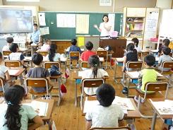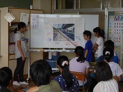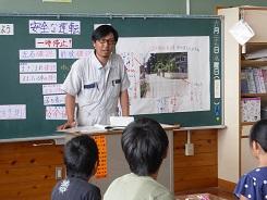 6年生の授業は、交通事故にあわないようにするための危険予知能力と危険回避能力の向上を目指したもので、視聴覚教材や学習支援ボランティアとして乙畑自動車整備工場の市村典久様のご協力を得て行いました。道路の写真を見ながら、どのような危険があるかをグループで話し合いながら安全な自転車の乗り方について確認し合った授業でした。最後に市村様から事故の防止に必要なことについて、運転者としての立場や自動車を取り扱っているという立場からお話をいただき、学習に深まりができました。