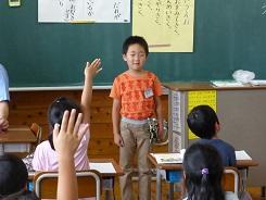 1年生の授業は、話す力と聞く力の育成を目指した「たからものはっぴょうかいをしよう」を行いました。自分の宝物を発表した後、聞いていた児童がそれに関して質問をして、発表者が答えるという授業です。聞く人数によって適切な声の大きさを出すことや分かりやすい発表にすること、発表内容を正しく聞き取り適切な質問をする等、1年生にとっては難しい部分のある授業になる心配がありました。しかし、わくわくしながら「たからもの」を見つめ、発表を終えた後にうれしそうに他の児童から質問を受けている姿が多く見られ、充実した「たからもの」発表会になりました。