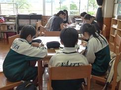 6月29日の午前中、矢板中学校の2年生が3名、本校で図書事務体験を行いました。
