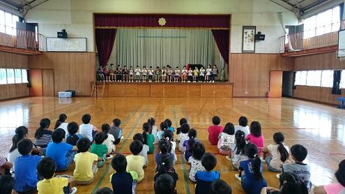 9月27日の朝は、明日矢板市文化会館で行われる学校音楽祭で演奏するパッヘルベルのカノンを全児童に披露する音楽朝会を行いました。