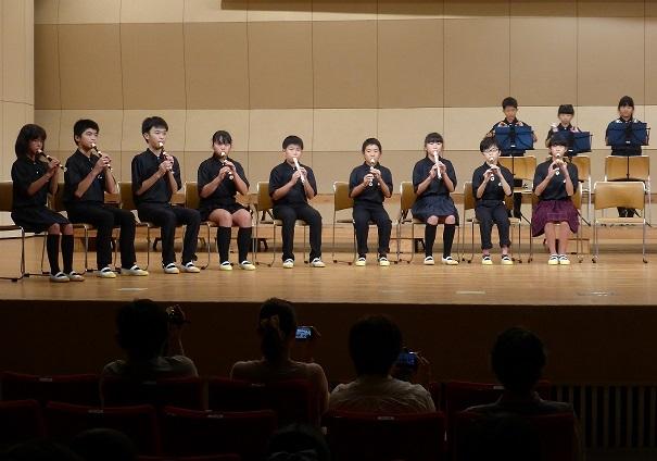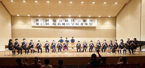 9月28日に矢板市文化会館で行われた学校音楽祭で、本校児童が演奏をしました。今までの練習の成果をしっかりと発揮した、美しい演奏だったと思います。特に、トーンチャイムやハンドベルの響きとリコーダーの音色が上手に補完しあったことと、全体を通してピアノが曲を支ていたことが合わさり、最後まで張りのあるきれいな演奏となったように感じました。鑑賞にいらっしゃった方々の中には、「涙が出そうになった」とおっしゃってくださった方が多数いらっしゃいました。