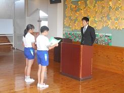 掛田先生は、現在半年間の研修のため宇都宮大学で半年間の研修をしている小松智子教諭の補充として、4月から本校で勤務してくださいました。日々の児童の学習や学校生活を誠実な人柄で指導してくださったので、児童達は落ち着いて学習に取り組むことができました。また、球技大会のサッカー指導では、ご自身持ってらっしゃる技能を発揮なさって児童への指導を行ってくださりました。10月からは塩谷町立塩谷中学校での勤務となります。本校での経験を生かし、ご活躍できますことをご期待申しあげます。半年間、ありがとうございました。