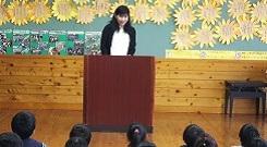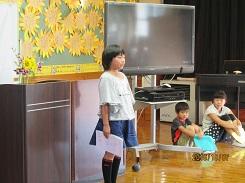 始業式に先立って、本日より本校に非常勤で勤務することになった黒木広美先生と、本日より転入した児童の紹介を行いました。