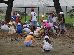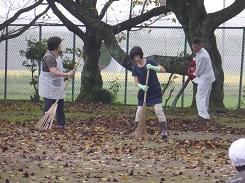 児童が「けいどろ」をしている時に、教頭先生を含めた3人の先生がサクラの下にある落ち葉を、集めてくださっていました。けいどろの後、児童も落ち葉集めをしました。短時間でしたが熱心に活動してくれたので、たくさん集めることが出来ました。サクラの枝にはまだ葉がついています。今度の台風で落ち葉になるでしょうか。