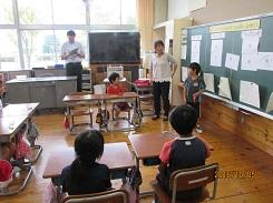 1年生から6年生までの授業の様子や特別教室、体育館やプールなどの施設、校庭をご覧になり、「きれいにお使いくださってますね。」「児童が落ち着いて授業を受けていますね。」などの感想をいただきました。