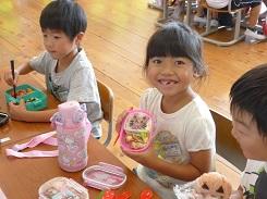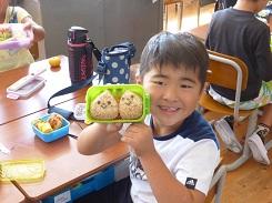 10月7日は給食がなく、第2回目のお弁当の日でした。お弁当では配膳が必要ないので、準備も早く終わりゆっくりとお弁当を楽しむことができました。前回は登場しなかったキャラ弁のキャラクターで今回登場したのは、ハローウィンのキャラクターをトマトケチャップで味付けをしたご飯を海苔でディスプレイしたものでした。秋を感じるお弁当が多かったようです。
