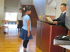 終業式後に、塩谷地区読書感想文コンクール審査の入賞者の表彰と地区学校音楽祭の表彰を行いました。本校からは、塩谷地区の代表作品6点のうちの2点が優秀賞として県の審査へ出品されているほか、優良賞を3名が受賞するという素晴らしい結果を得ています。その後、児童指導主任と学習指導主任からそれぞれ、1学期の総括と2学期に向けての話がありました。